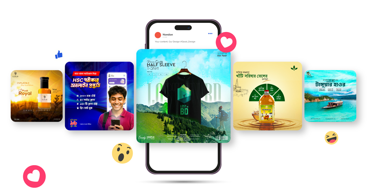 In this digital era, your brand’s online appearance can make or break your reach. At Nondon, we offer creative, engaging, and brand-aligned social media designs that help you communicate with clarity and style. From daily content posts to promotional banners, our visuals help you stand out in busy digital spaces.